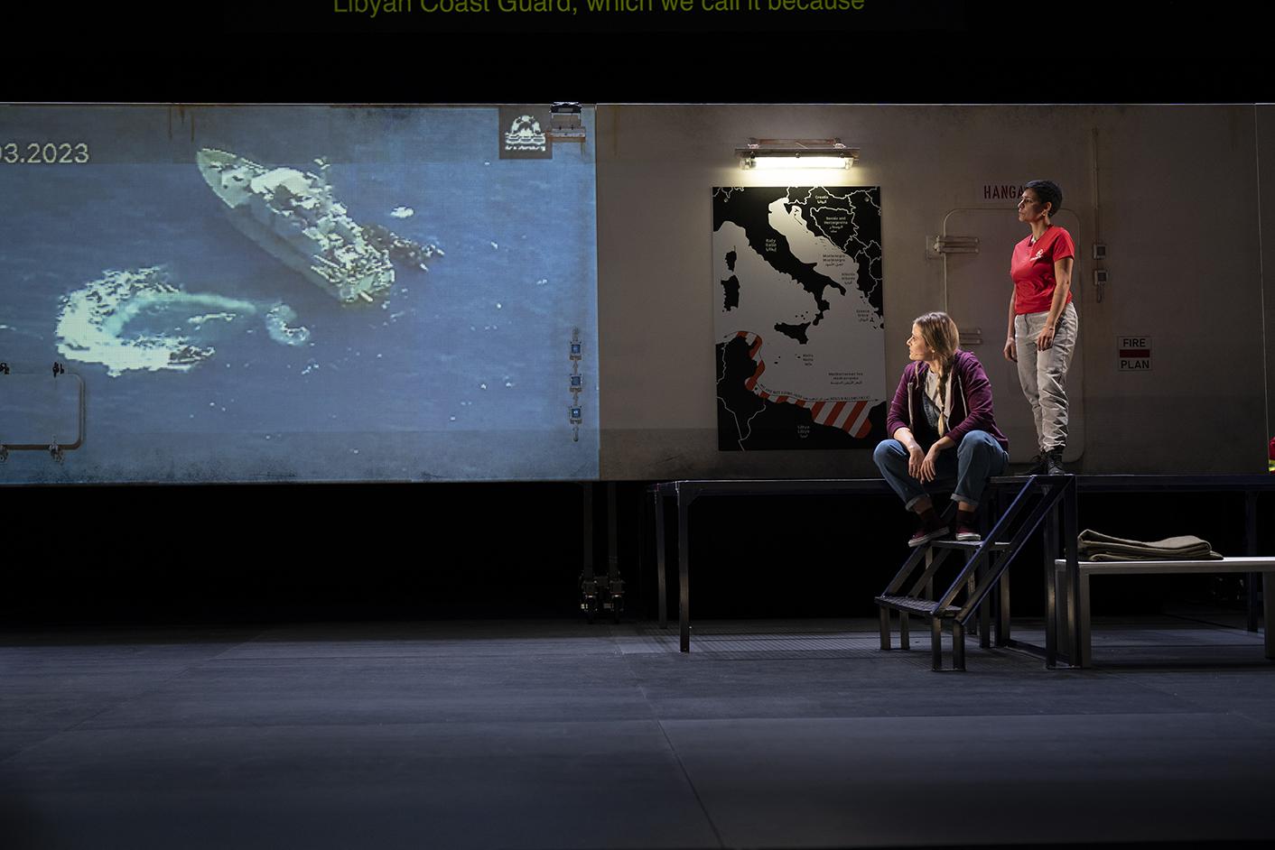 he present show, conceived by the entire company, dramaturgy and direction by Nicola Borghesi and Enrico Baraldi, puts onstage a sea journey across the Mediterranean by a group of activists aimed at rescuing stranded migrants. To create the work, the company carried out months of research, including a stay on the isle of Lampedusa in Sicily, meetings with members of the humanitarian organizations, Sea Watch and EMERGENCY, and last but not least, an almost five-week mission onboard Sea-Watch 5, one of the rescue ships, operating in the central Mediterranean. During this trip, 156 people were rescued and taken to ‘a place of safety’, in this case, the Northern Italian port of La Spezia.
