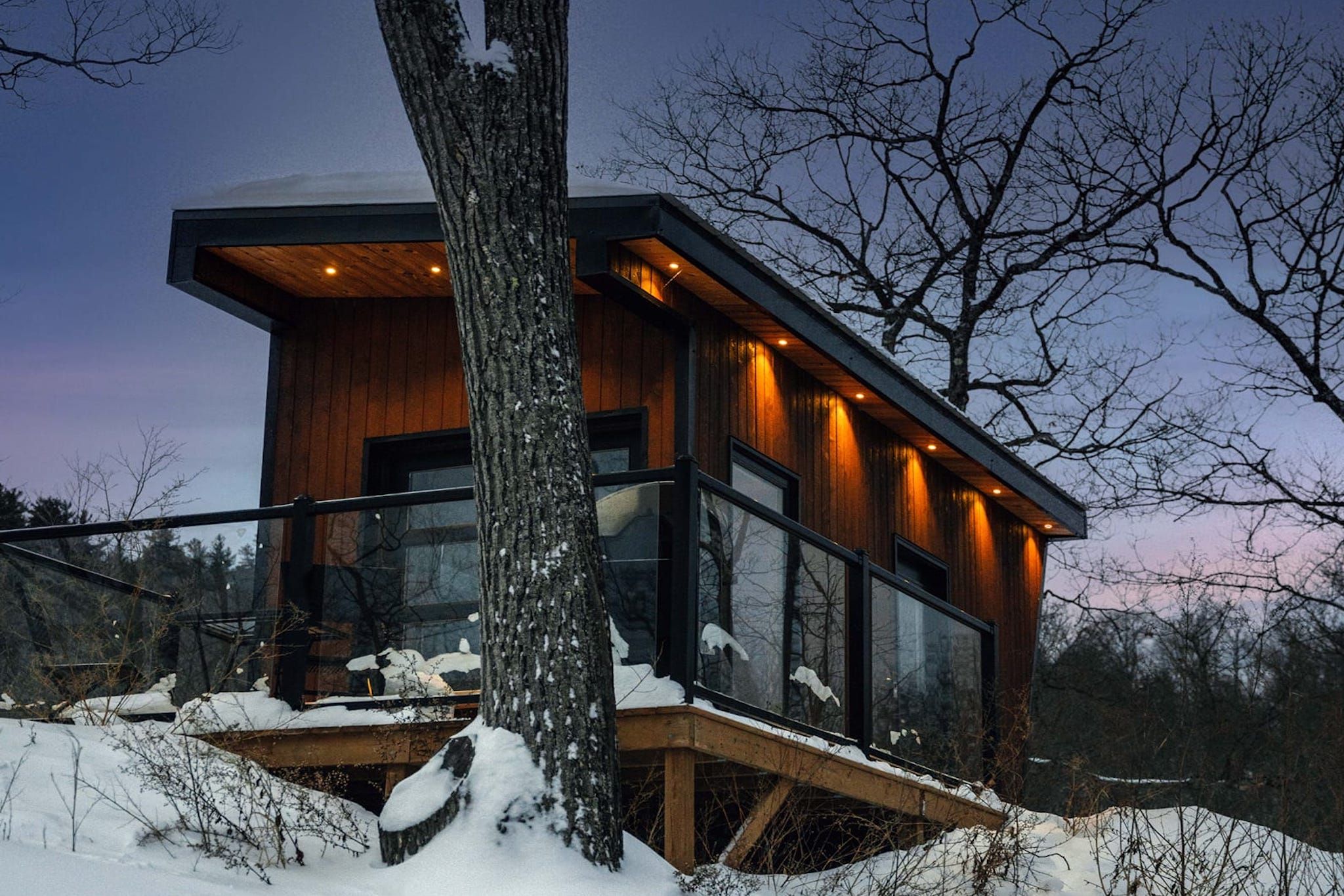 Located in Calabogie, Ont., this little slice of heaven is “suspended above the shores of Calabogie Lake near the base of Dickson Mountain.” From the cabin, guests can take in expansive views of the lake and land below with access to some of the “best hiking trails in Southern Ontario.”