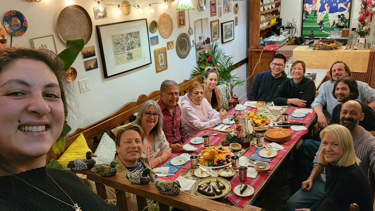 Jamie Oliver, second from left, at Maha’s.