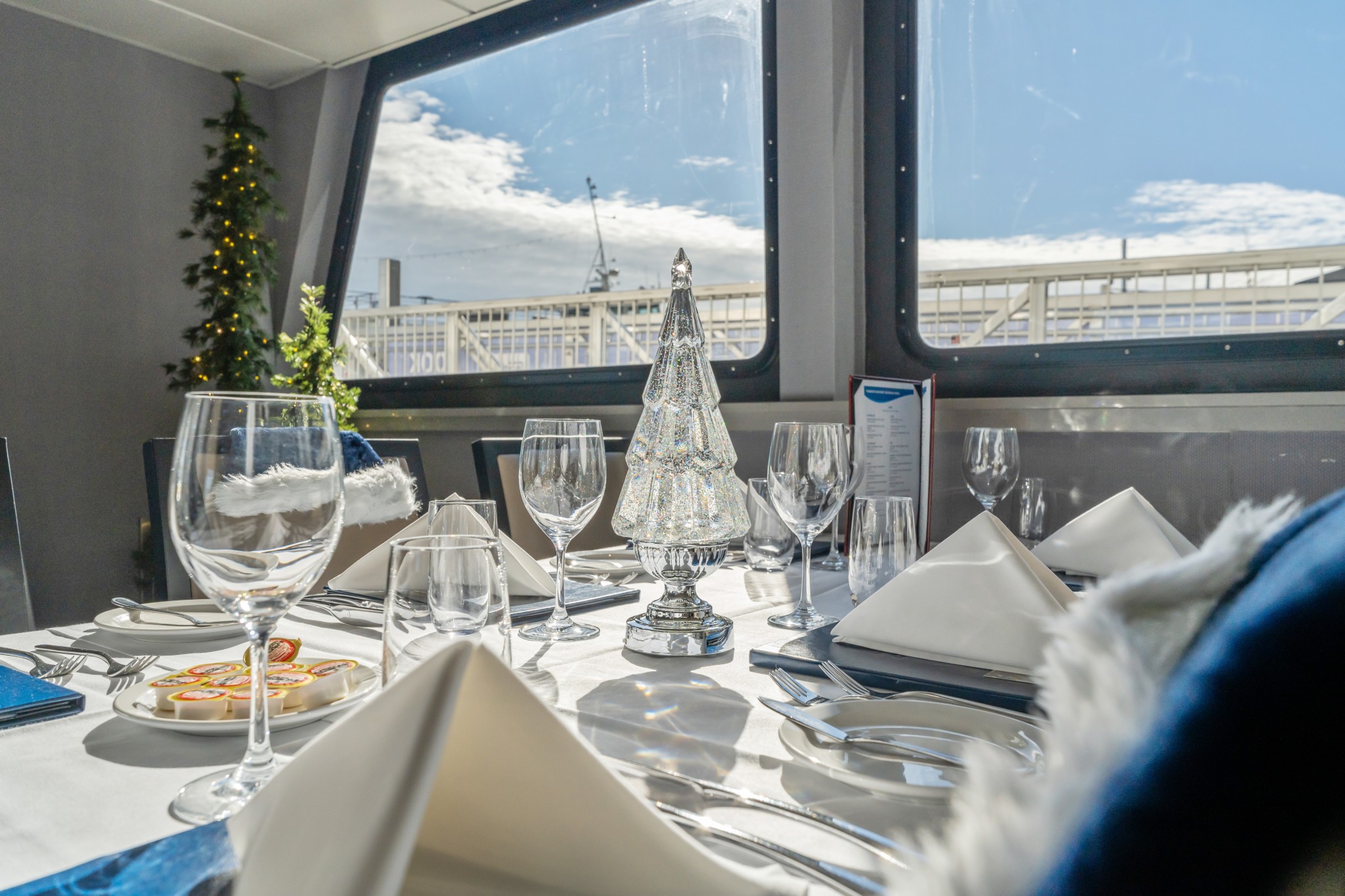 As we stepped aboard, we were warmly greeted by the crew captain. The ship itself was decked out like a Pinterest board come to life with Christmas trees, glowing garlands, fairy lights — the works.